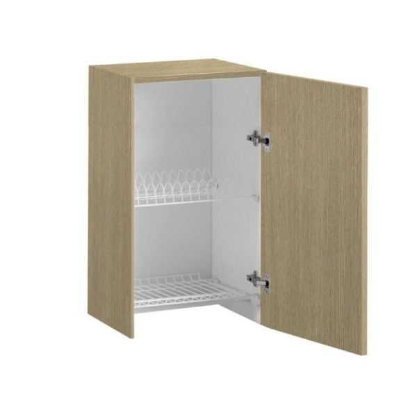 Pensile scolapiatti 60 cm con anta finitura olmo, completo di griglia scolapiatti. Pratico, elegante e compatto, ideale per cucine funzionali e dallo stile naturale.