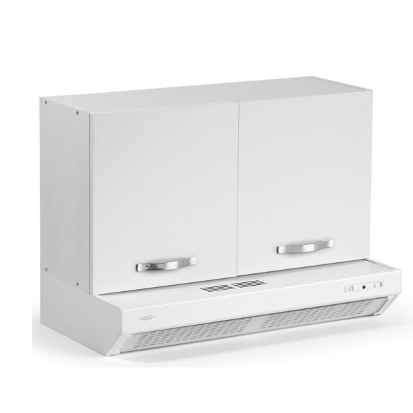 Pensile sopracappa da 90 cm in finitura bianco frassinato, ideale per completare la cucina con stile e praticità. Robusto, spazioso e compatibile con cappe da incasso.