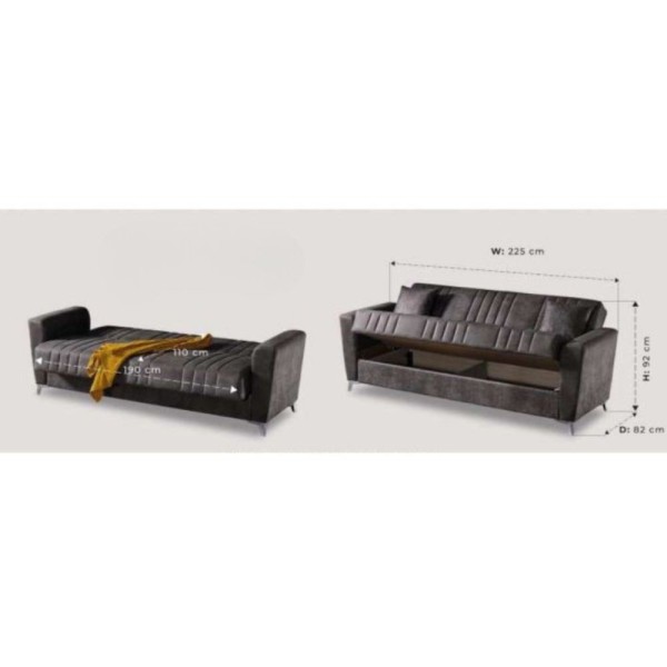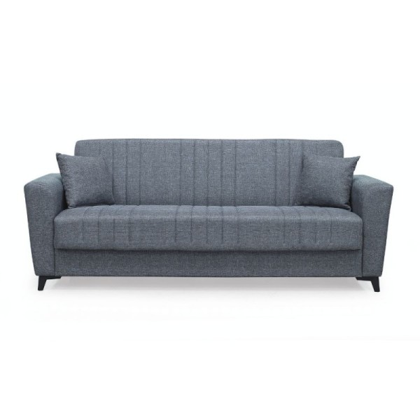 Scopri il divano letto 3 posti Kriog di Toscohome, elegante e funzionale. Con braccioli squadrati e rivestimento color cenere, offre comfort e stile per ogni ambiente. Ideale per ospiti!