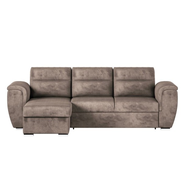 Divano angolare Washington con penisola, 2 contenitori e letto. Colore nature e taupè, pratico e moderno, perfetto per arredare con stile e funzionalità ogni soggiorno.