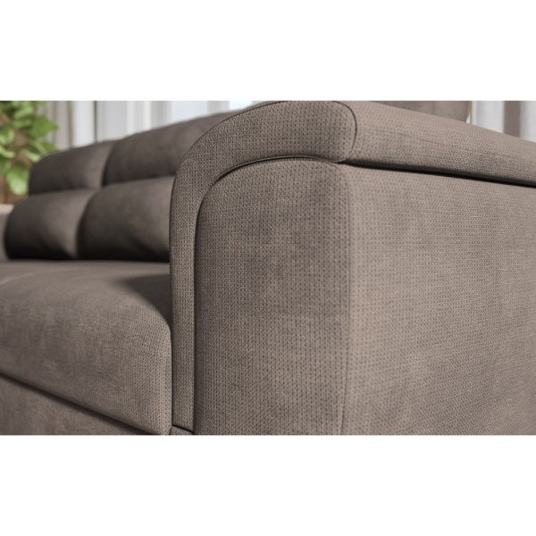 Il divano letto Rotterdam è elegante e funzionale, con un comodo contenitore integrato e un design moderno in colore tortora.