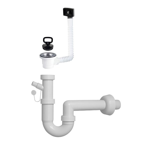Sifone lavello a 1 via con attacco 1"1/4, piletta da 2" e scarico per lavastoviglie. Ideale per installazioni domestiche pratiche ed efficienti. Facile da montare.