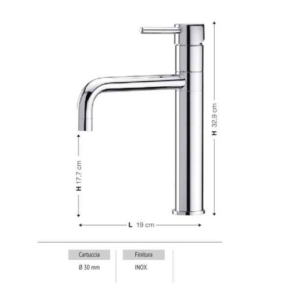 Il miscelatore per lavabo Lena è realizzato in acciaio inossidabile con finitura cromata, garantendo durata e resistenza. Il suo design elegante e moderno si adatta perfettamente a qualsiasi bagno.