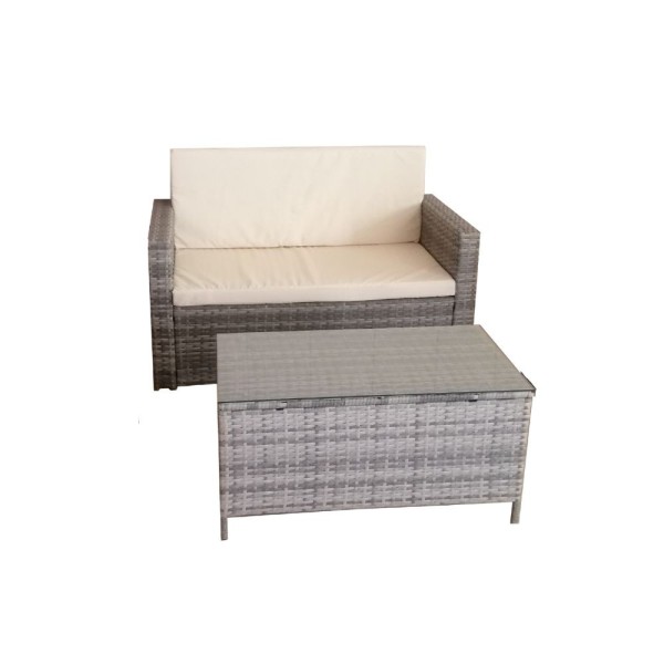 Salotto da giardino con divano poltrone e tavolino in rattan grigio - WRS066G