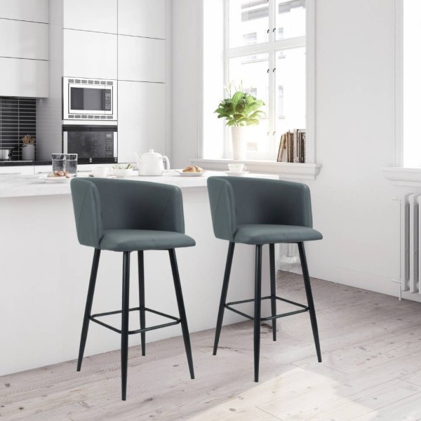 Sgabello da bar moderno in ecopelle grigia con gamba in metallo nero. Design elegante e confortevole, ideale per cucine moderne, banconi e ambienti dallo stile contemporaneo.