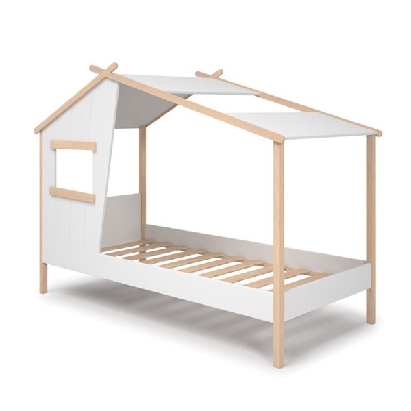Letto singolo a forma di casetta in legno massiccio colore bianco - Nidin