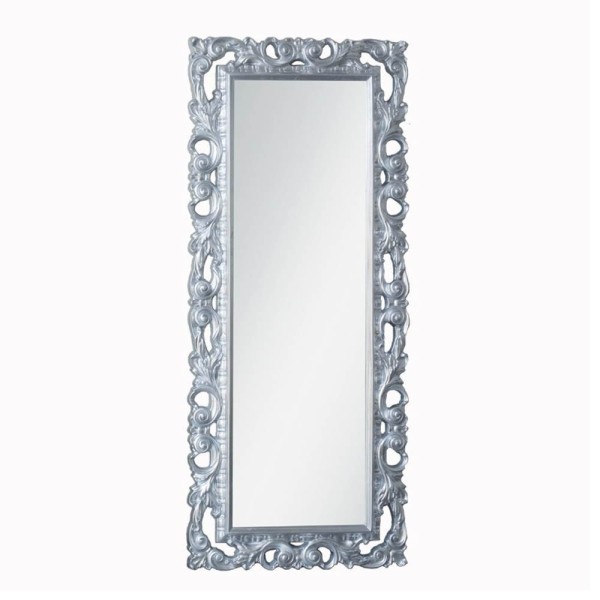Specchiera rettangolare 76x180 cm con cornice color argento verniciato. Elegante e luminosa, perfetta per ampliare visivamente gli spazi in salotto, ingresso o camera da letto.