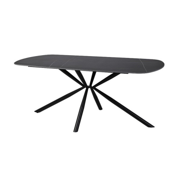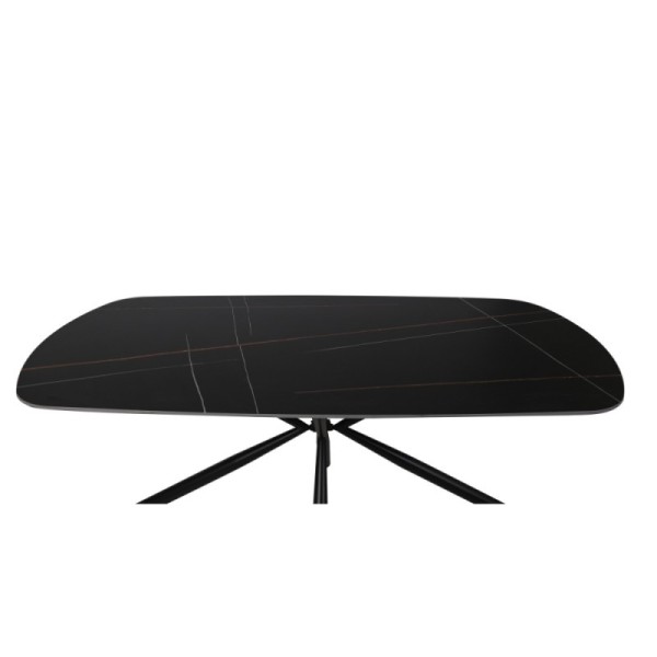 Elegante tavolo con piano in ceramica effetto marmo nero opaco e dettagli in oro, perfetto per aggiungere un tocco di lusso e stile alla tua casa.