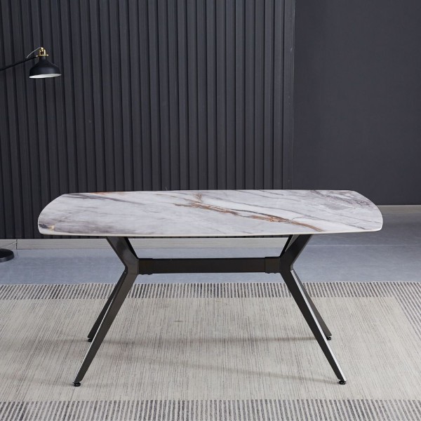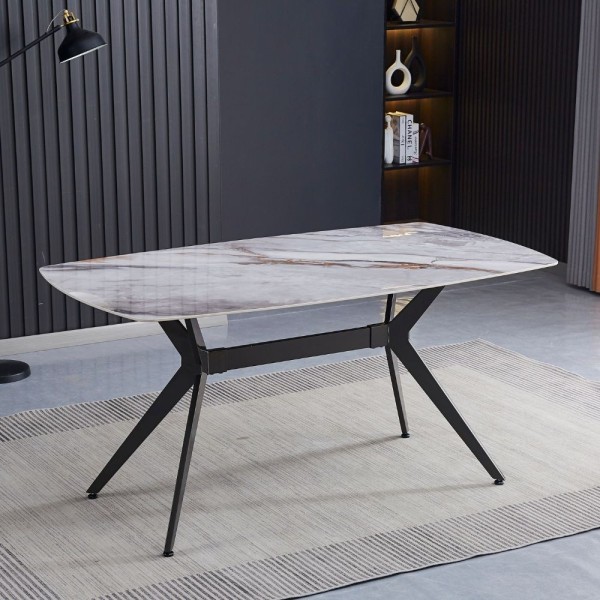 Tavolo allungabile con finitura ceramica marmo travertino e base in metallo robusto. Funzionale e raffinato, adatto a ogni tipo di ambiente.