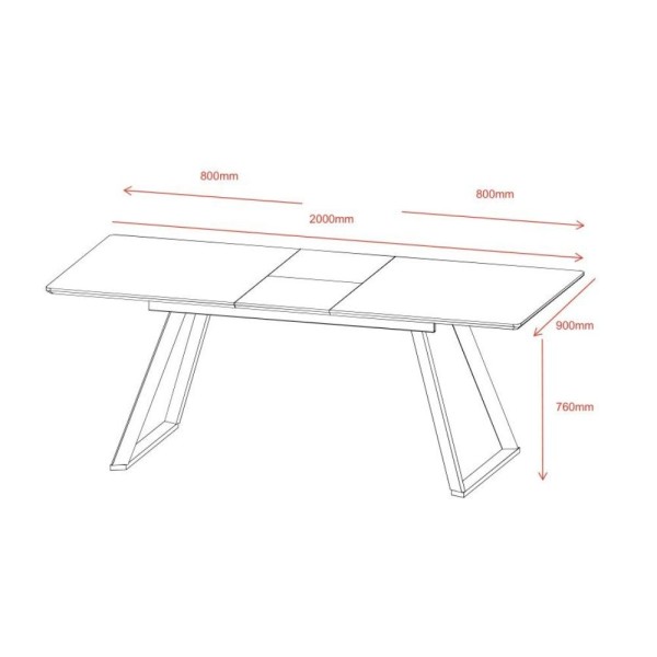 Tavolo allungabile con piano in ceramica e gambe in metallo.