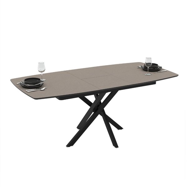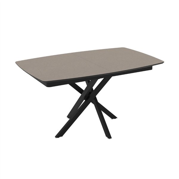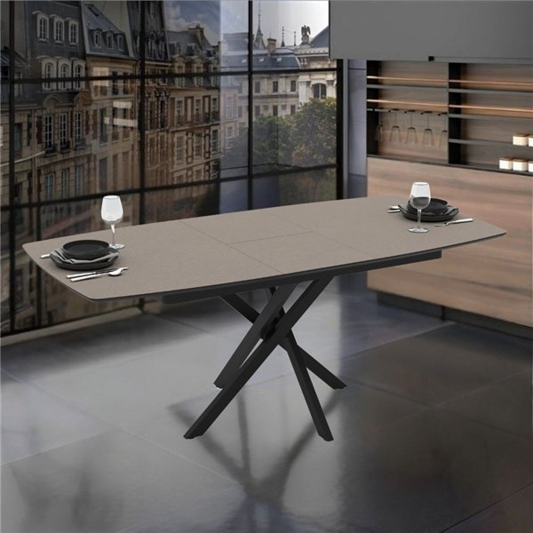 Tavolo allungabile moderno Ellys con piano grigio tortora e robuste gambe in metallo nero. Elegante e funzionale, misura 145x90x76 cm, ideale per ogni ambiente.