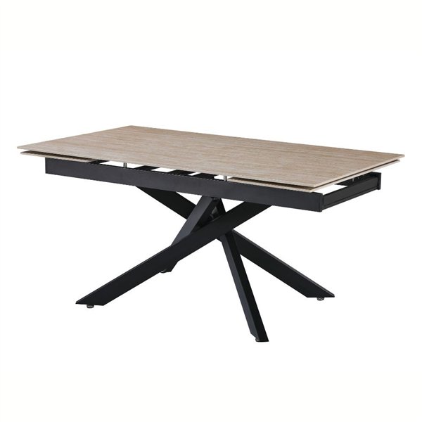 Tavolo allungabile piano in ceramica effetto marmo travertino e gambe in metallo nero 160x90x75.5H cm
