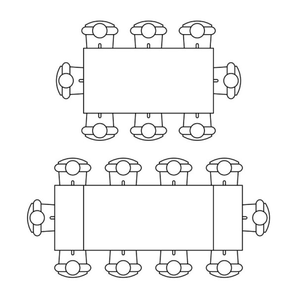 Tavolo rettangolare fisso con piano in MDF.