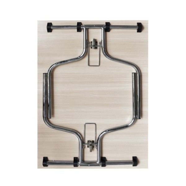 Tavolo pieghevole salvaspazio olmo con gambe in metallo cromato.